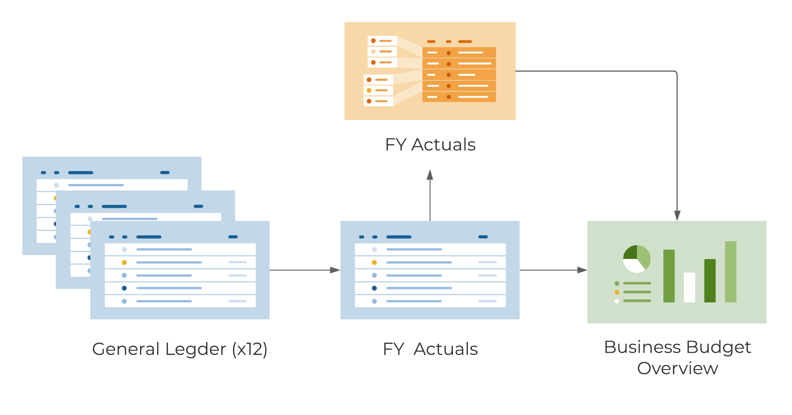 - Track monthly actuals against budget goals by department